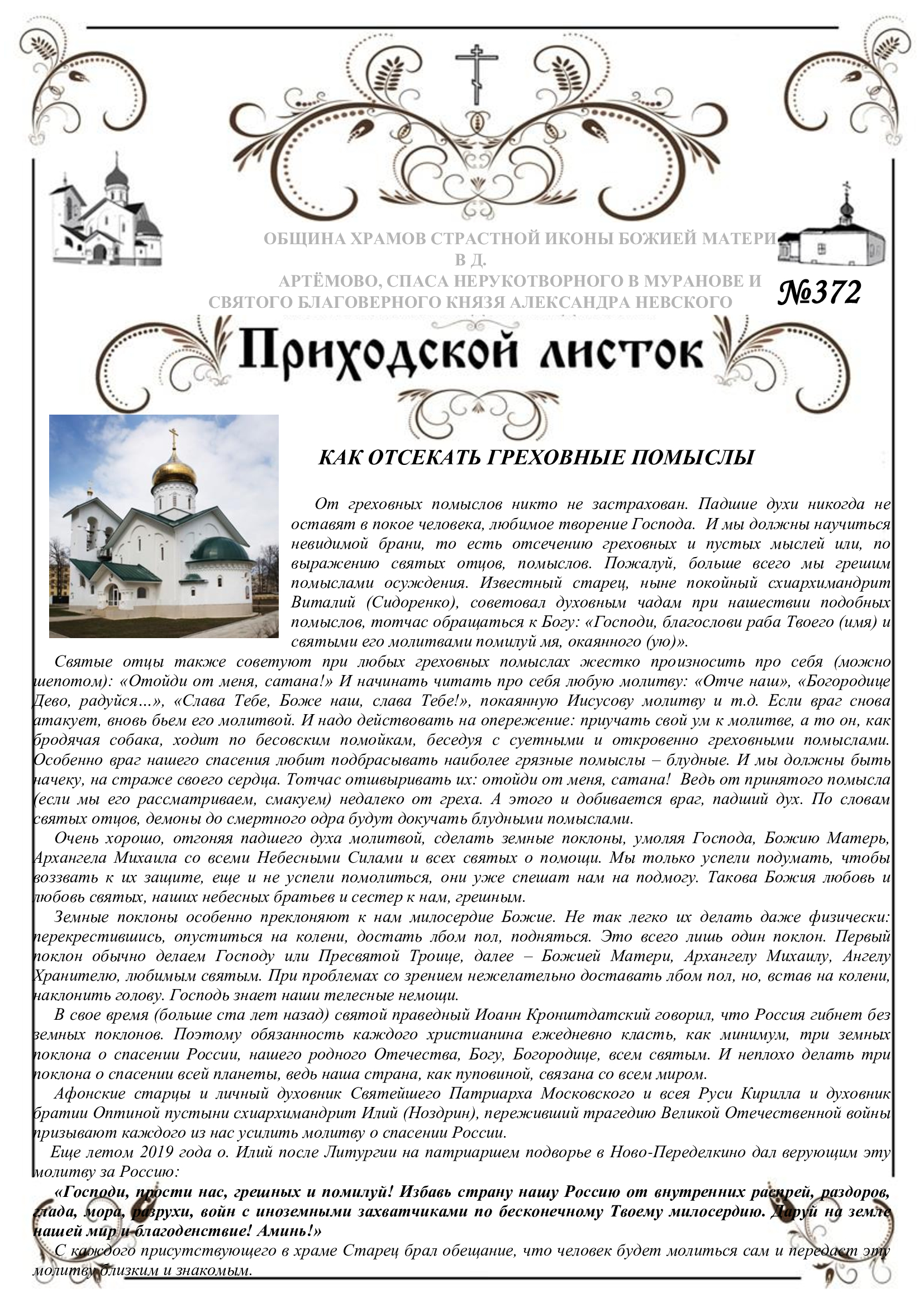 д. Артёмово Пушкинского благочиния Сергиево-Посадской епархии Русской Православной Церкви