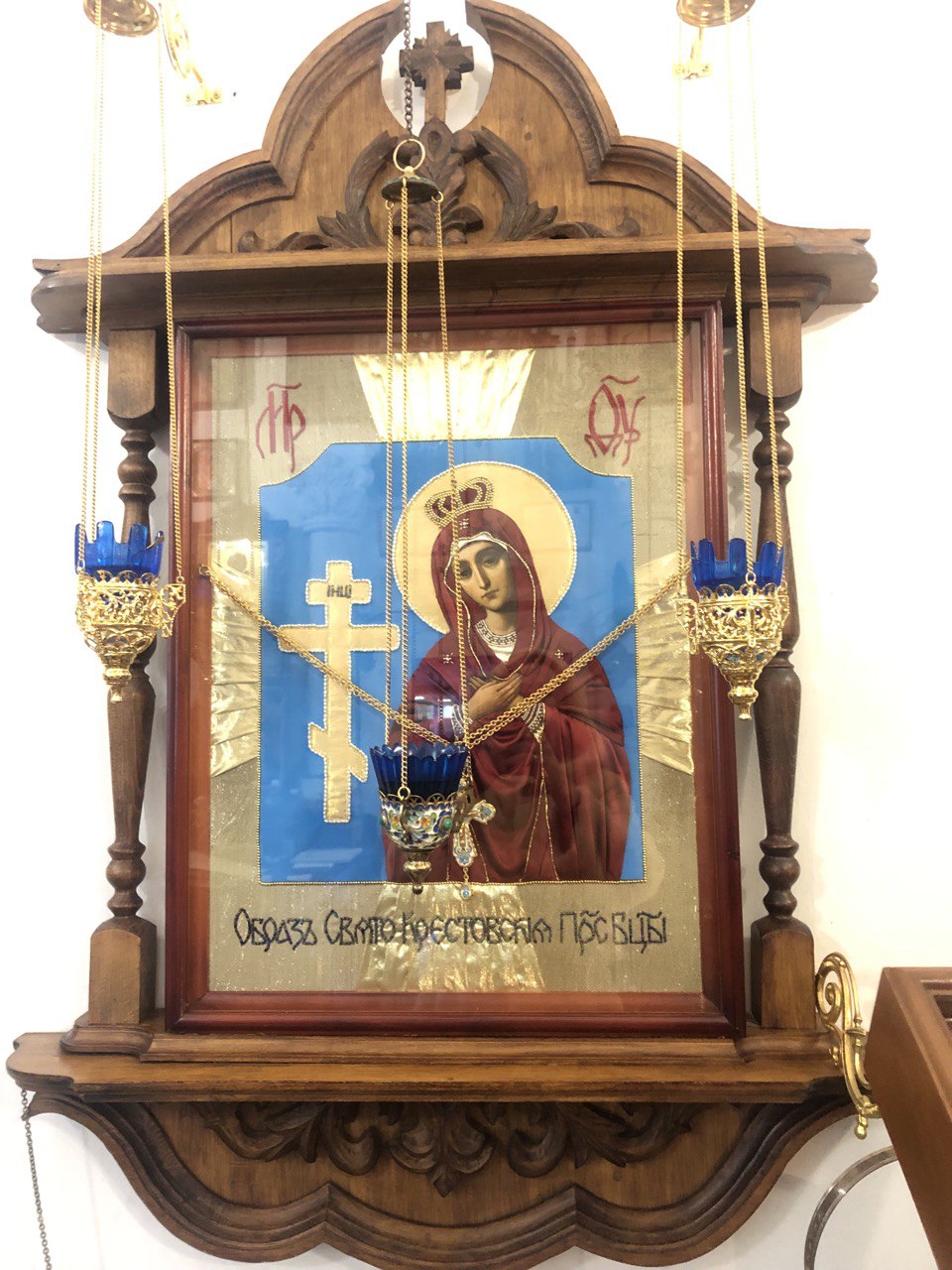 Икона Свято-Крестовской Божией Матери была необычным образом явлена 18 июня 1995 года в городе Будёновске (в прошлом город носил названия Святой Крест) во время захвата заложников в городской больнице