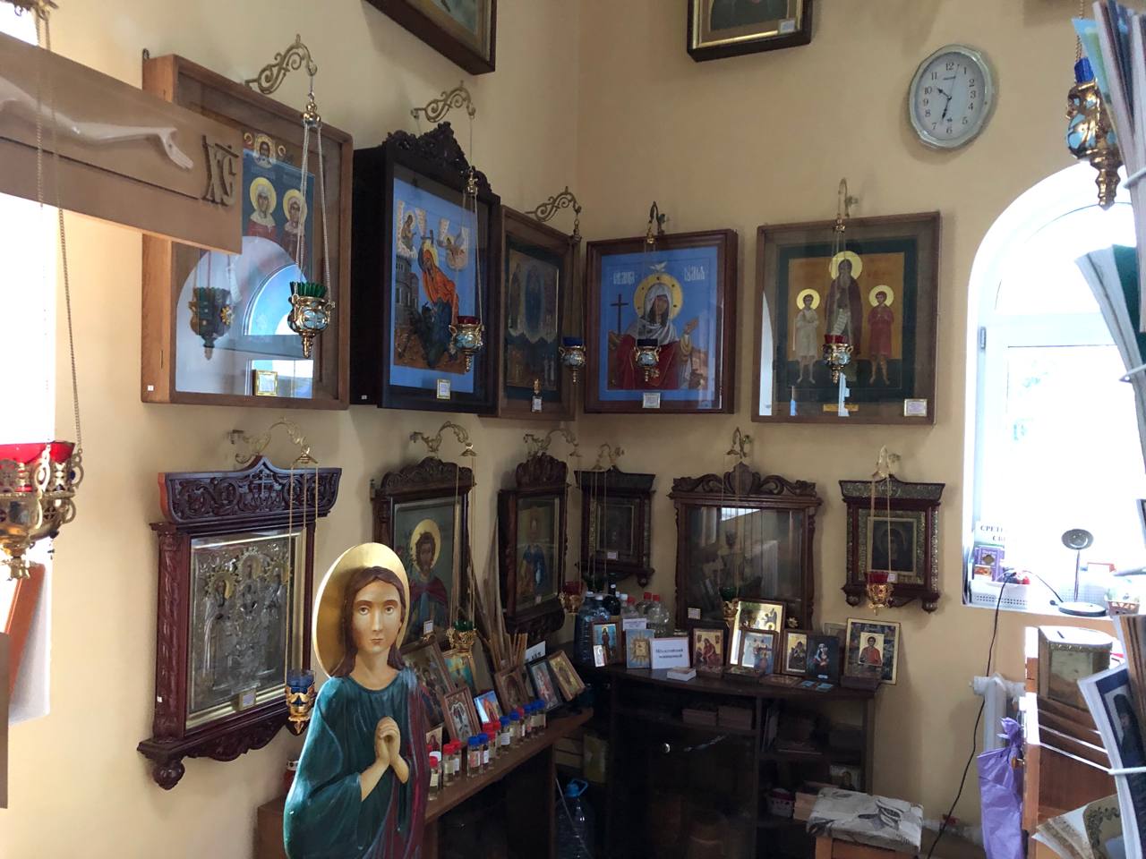 Среди особо чтимых святынь храма можно назвать старинную храмовую икону «Явление Божией Матери на Почаевской горе», а также икону «Явление Божией Матери в Тервеничах», переданную в дар приходу Тервеническим женским монастырем Санкт-Петербурской митрополии. Помимо этого в храме пребывают частицы святых мощей Почаевских подвижников благочестия - преп. Иова и преп. Амфилохия.