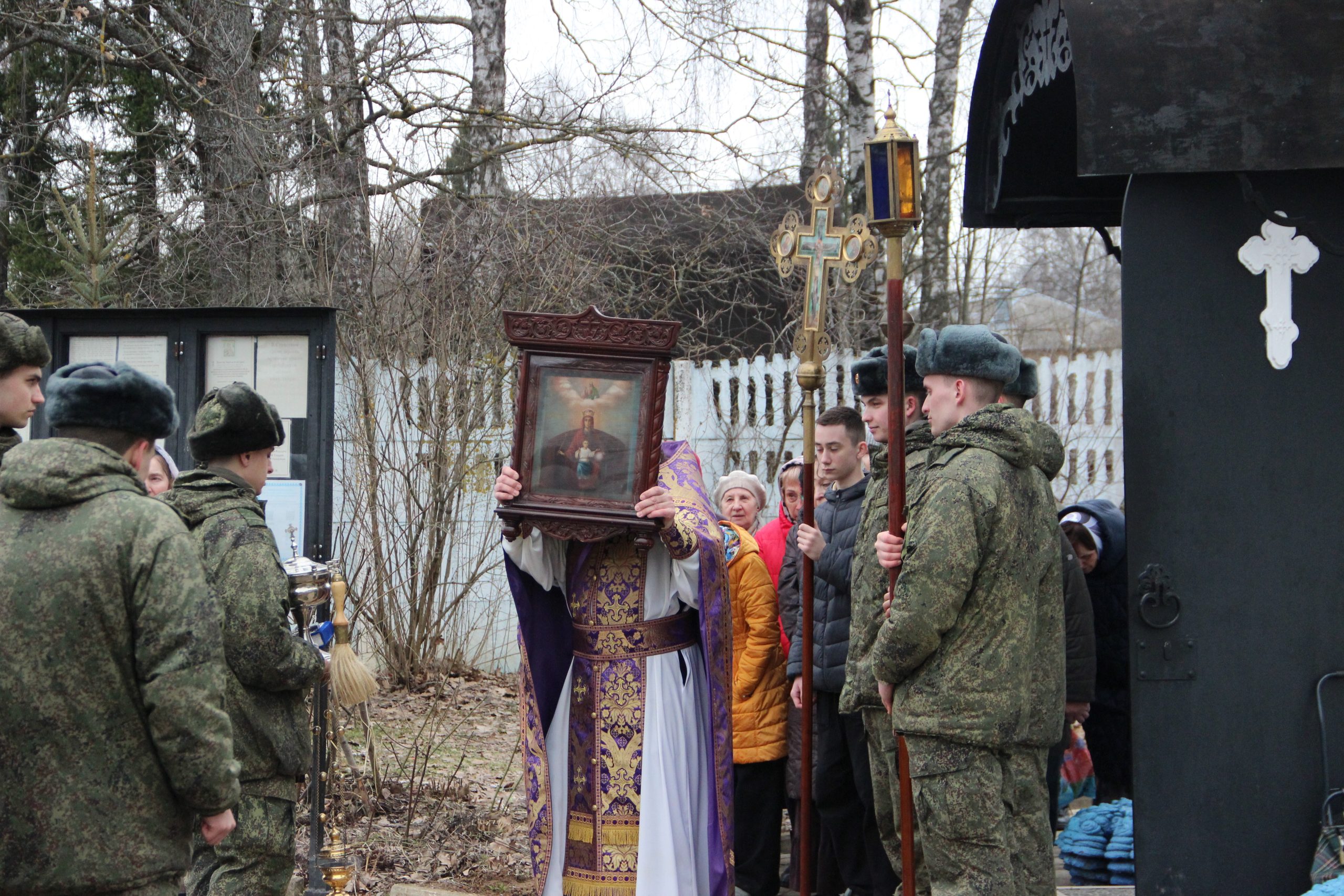 26 ноября во вторник священник Николай Линев принял участие в мероприятии, проведенном в военном комиссариате Пушкинского округа по случаю убытия призывников на армейскую службу. Священник произнес напутственное слово, отслужил молебен, а также вручил будущим солдатам предметы, необходимые для духовной жизни — Священное Писание, нательные кресты, молитвословы и благословил юношей на предстоящую воинскую службу. >>