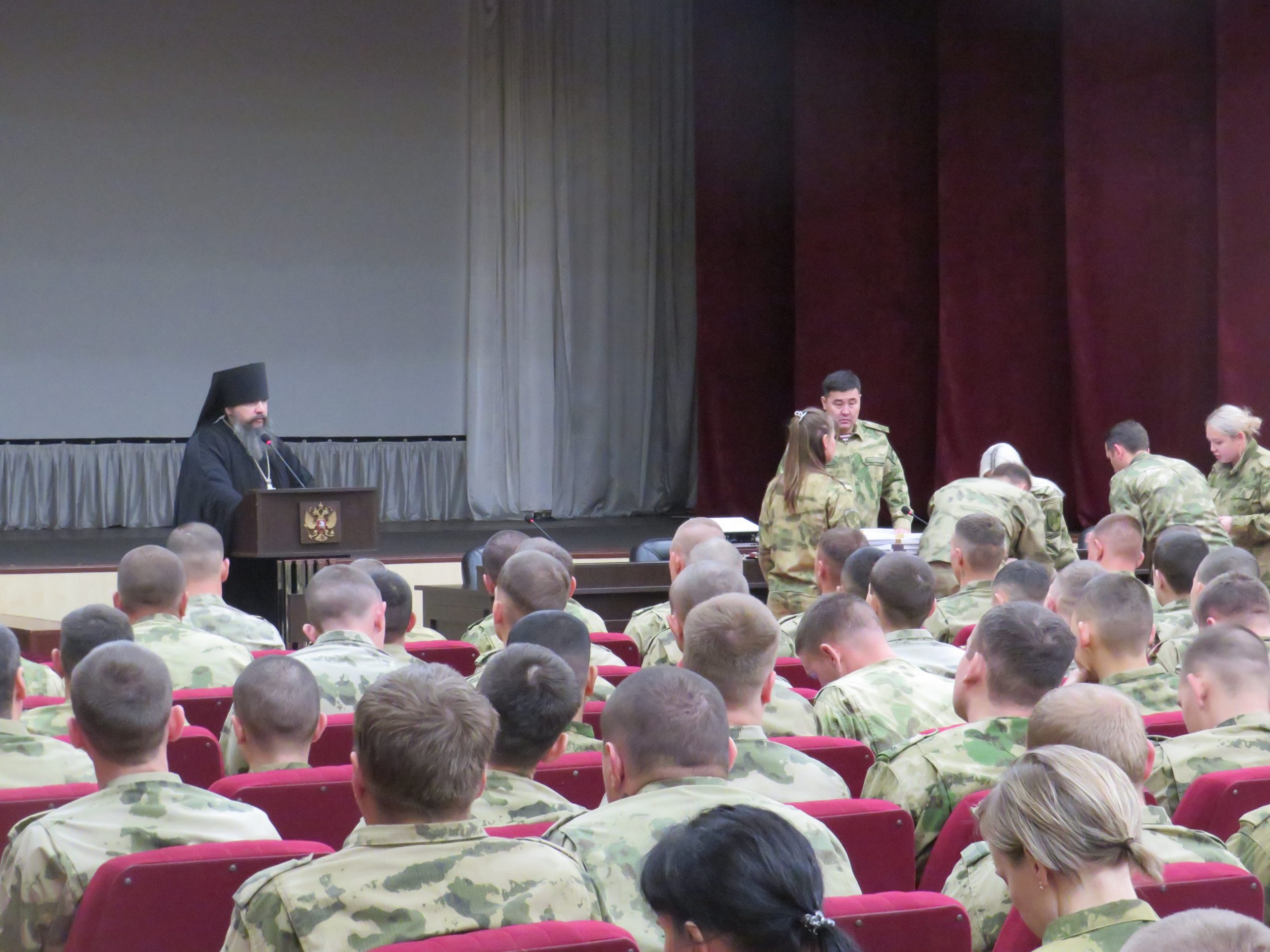 Священник представил защитникам Отечества, среди которых были военнослужащие разных категорий, учение Церкви о происхождении зла и ознакомил с различными способами преодоления греховных страстей и наклонностей. Отец Феофан привел воинам различные примеры из своего опыта, а также напомнил им о последствиях дисциплинарных проступков и правонарушений. Несомненно, выступление военного пастыря произвела на солдат и офицеров глубокое впечатление, и, что немало важно, воспринималась участниками встречи с большим вниманием. >>