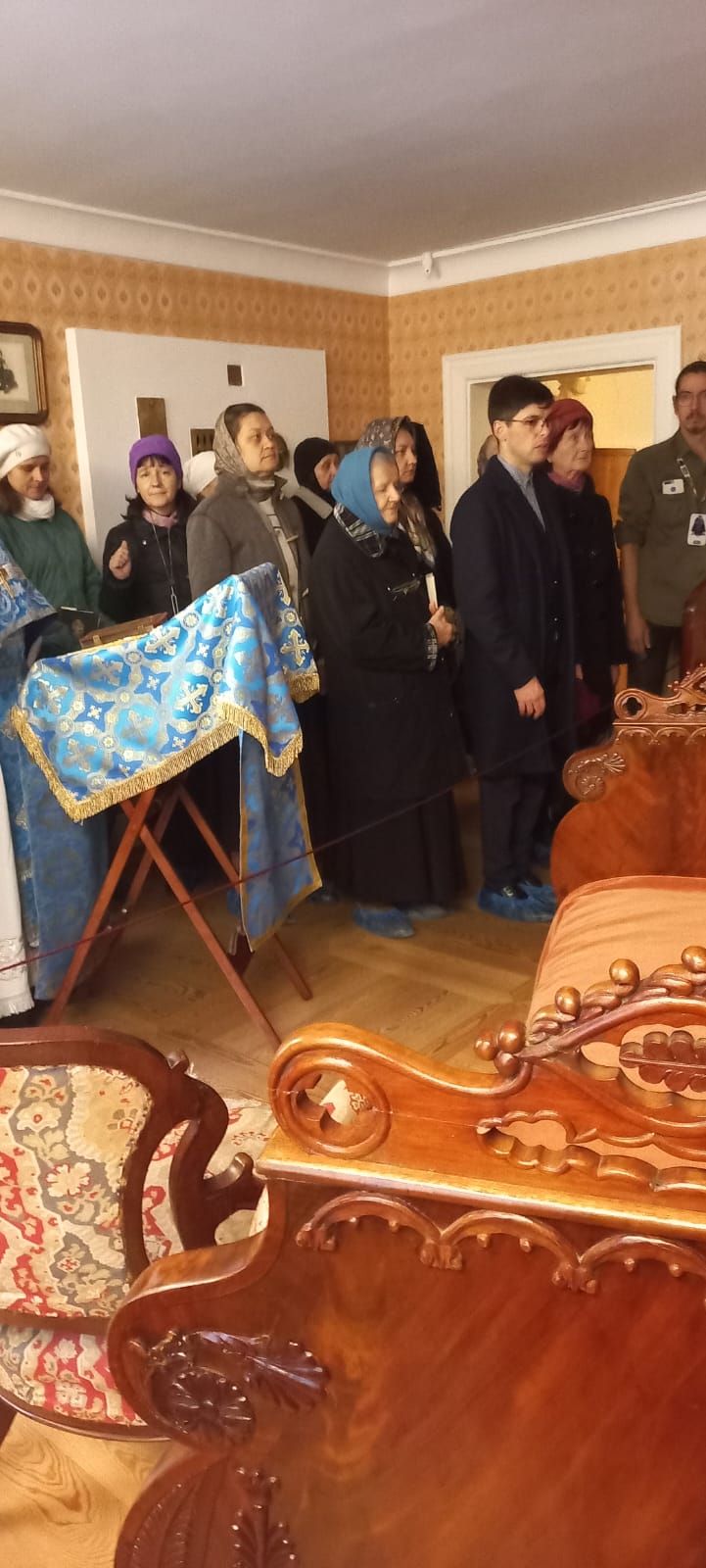 По окончании богослужения верующие прошли в главный усадебный дом музея, где в одной из комнат, в спальне О. Н. Тютчевой пребывает этот чудотворный образ, особо почитаемый в семье Тютчевых.