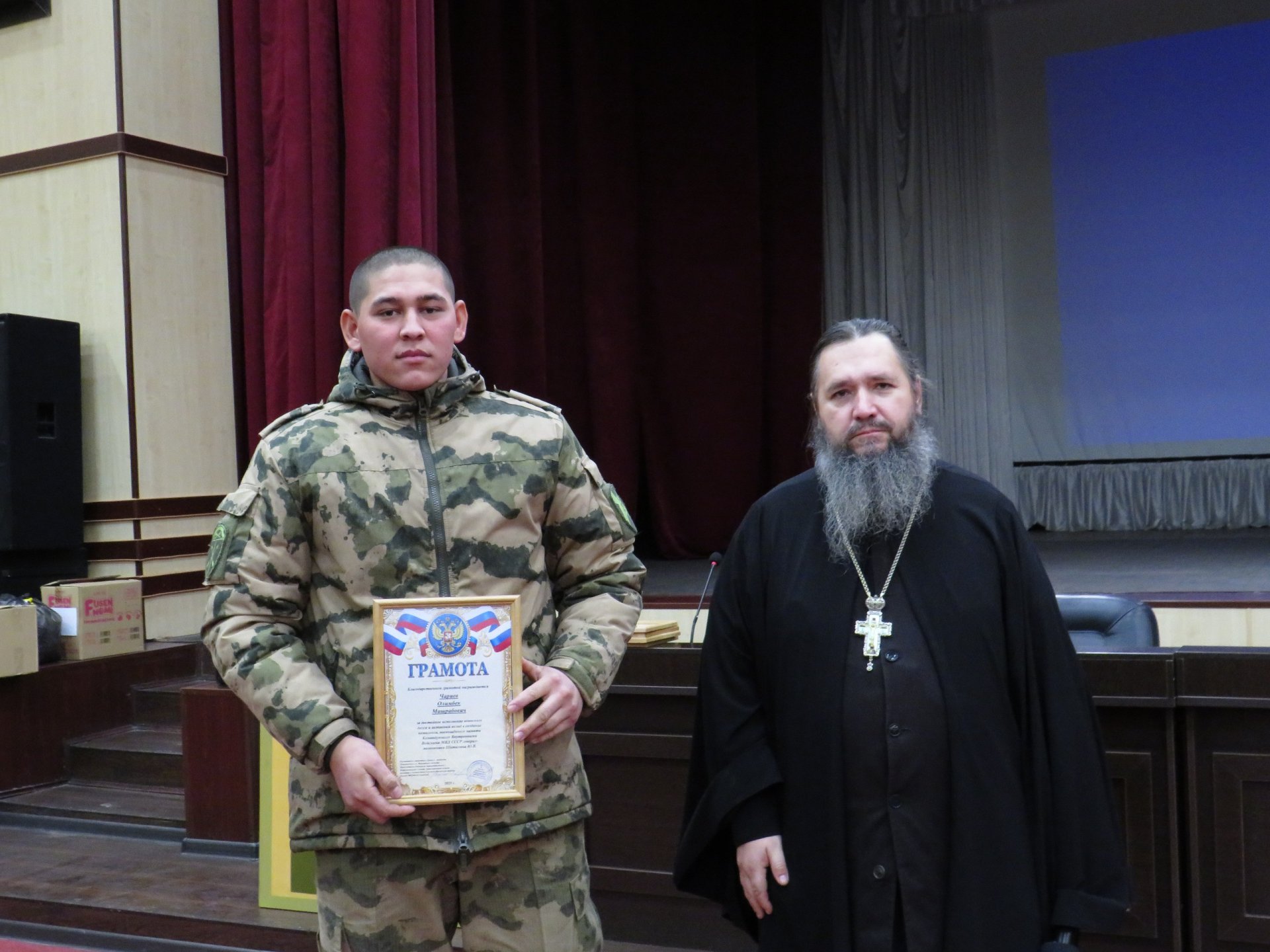 Открывая встречу председатель Отдела по взаимодействию с Вооруженными силами, правоохранительными органами и казачеством Сергиево-Посадской епархии игумен Феофан (Замесов) представил защитникам Отечества представил матушку Марию и озвучил темы, которые она планировала затронуть в своем выступлении. >>