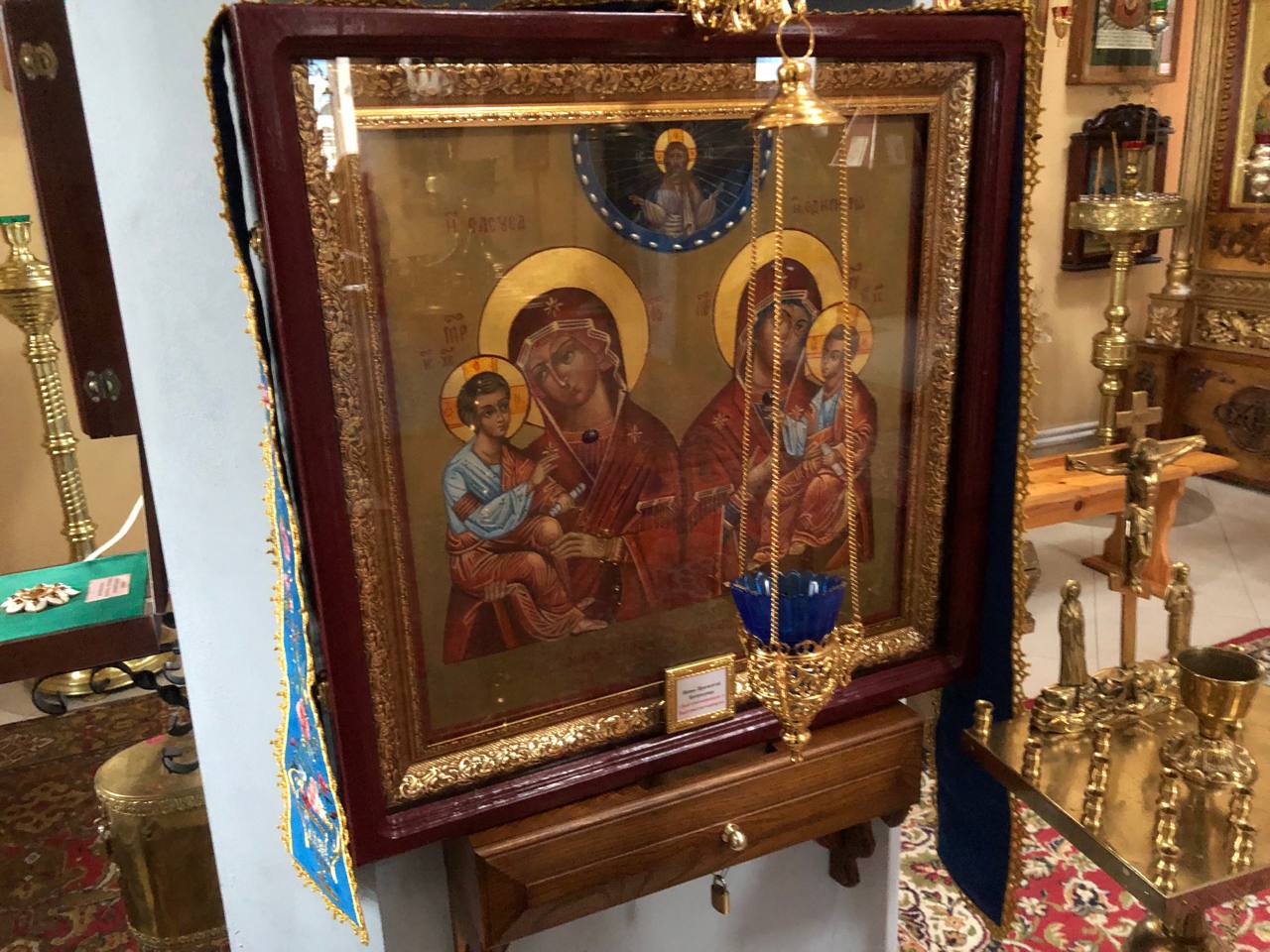 Среди особо чтимых святынь храма можно назвать старинную храмовую икону «Явление Божией Матери на Почаевской горе», а также икону «Явление Божией Матери в Тервеничах», переданную в дар приходу Тервеническим женским монастырем Санкт-Петербурской митрополии. Помимо этого в храме пребывают частицы святых мощей Почаевских подвижников благочестия - преп. Иова и преп. Амфилохия.