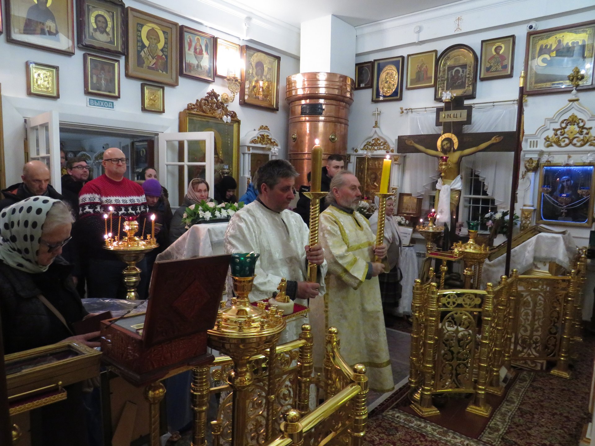 Главная > Медиа > Фотогалерея > 19 января Крещенский Господе. В Спасском храме усадьбы «Мураново» Великое освящение воды в храме; Крестный ход и Великое освящение воды на святом Казанском источнике д.Мураново