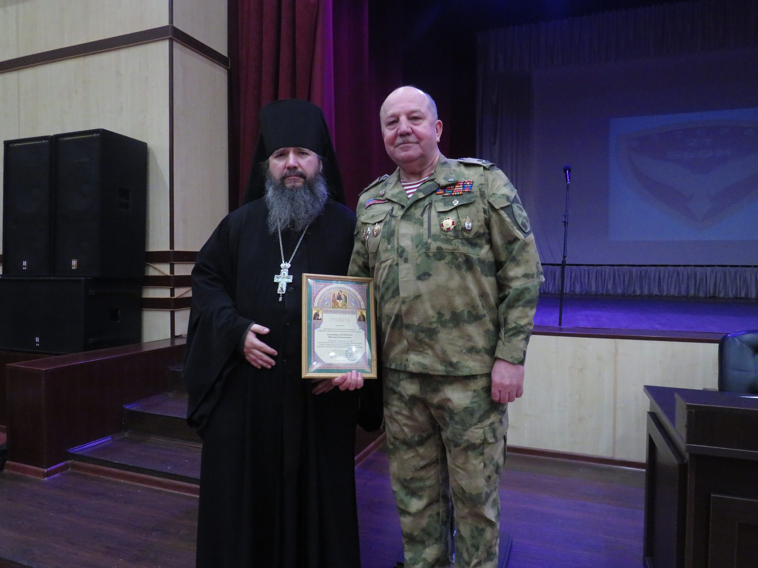 Годовое собрание ветеранской организации Софринской Бригады.14 декабря в Софринской Бригаде прошло годовое собрание членовветеранской организации данного войскового соединения.В мероприятии приняли участие ветераны-софринцы различных поколений,действующие военнослужащие бригады, представители администрации,попечители Софринской Бригады, руководство и члены Пушкинскогоотделения ветеранской организации «Боевое братство», исвященнослужители, окормляющие личный состав. Мероприятие началось сдоклада Председателя Совета ветеранов подполковника Любимова В. В.,который в своем выступлении ознакомил участников собрания с работой,проделанной ветеранской организацией в 2024г. Особое внимание былоуделено вопросам оказания помощи воинам-софринцам, находящимся взоне СВО и в Курской области. Затем слово было предоставлено ЗаместителюПредседателя Совета ветеранов подполковнику Политыло Я. Н., которыйрассказал о мероприятиях, проведенных ветеранами совместно с РусскойПравославной Церковью и о результатах данного взаимодействия.Далее к собравшимся обратились: генерал-майор Меликов М.А.,возглавляющий ветеранскую организацию подразделений специальногоназначения Росгвардии и Председатель регионального отделения «Боевогобратства» Борисов С. М. Затем перед участниками встречи выступилдуховный наставник воинов-софринцев игумен Феофан (Замесов), которыйне только рассказал присутствующим о работе, проделанной за год, но ивручил отдельным ветеранам грамоты Благочинного Пушкинского округасвященника Василия Ковальчука. В завершении официальной частисостоялись торжественный прием в ветеранскую организацию её новыхчленов и вручение им ветеранского удостоверения. После концертапатриотической тематики, собравшиеся прошли к памятному мемориалу, гдепочтили минутой молчания убиенных воинов-софринцев и возложили цветык плитам с именами погибших.Мероприятие завершилось общей трапезой, в ходе которой прошлообсуждение планов ветеранской организации на предстоящий 2025 год.