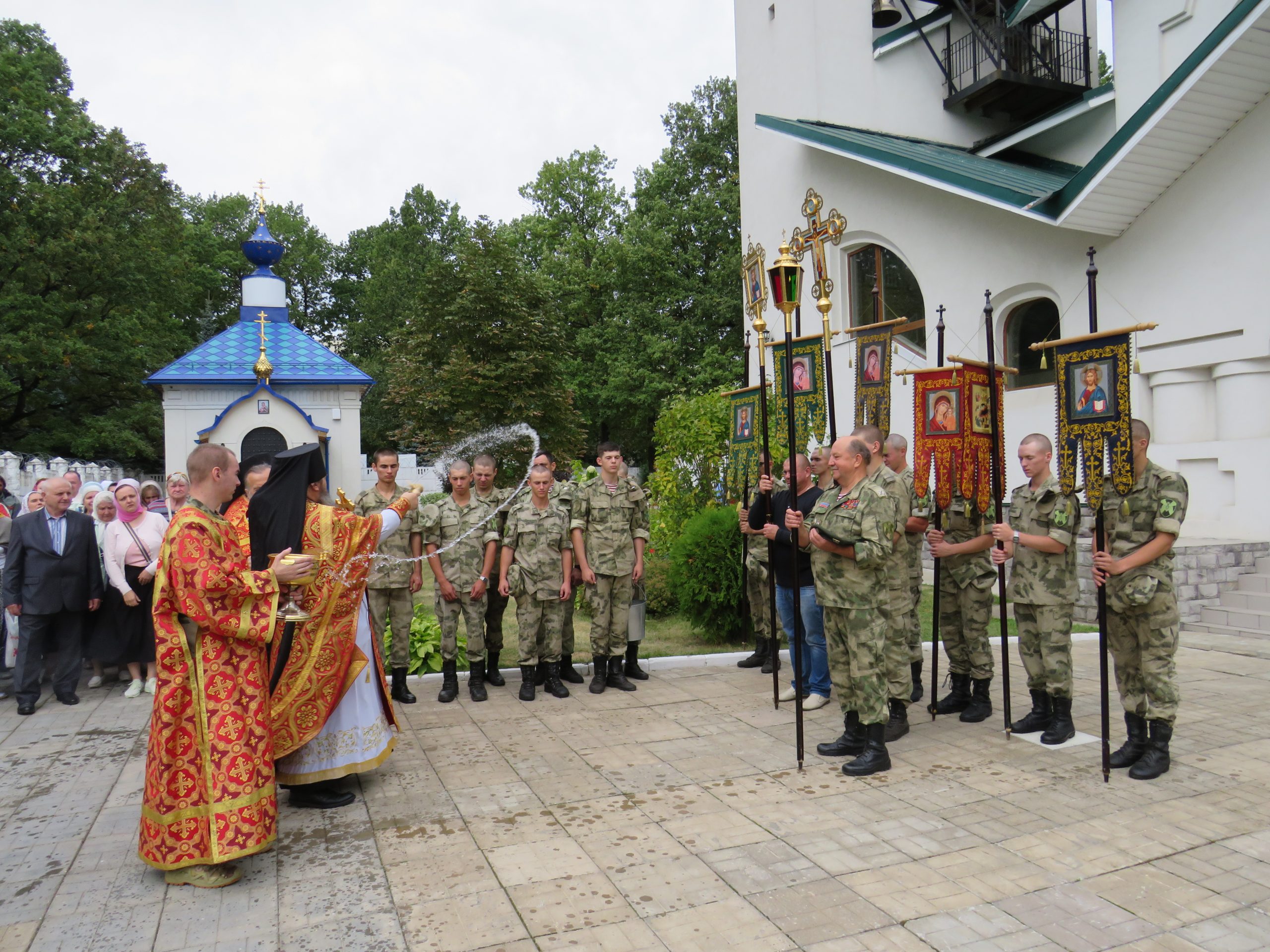 Во время богослужения присутствовали военнослужащие Бригады, которые прошли Крестным ходом.