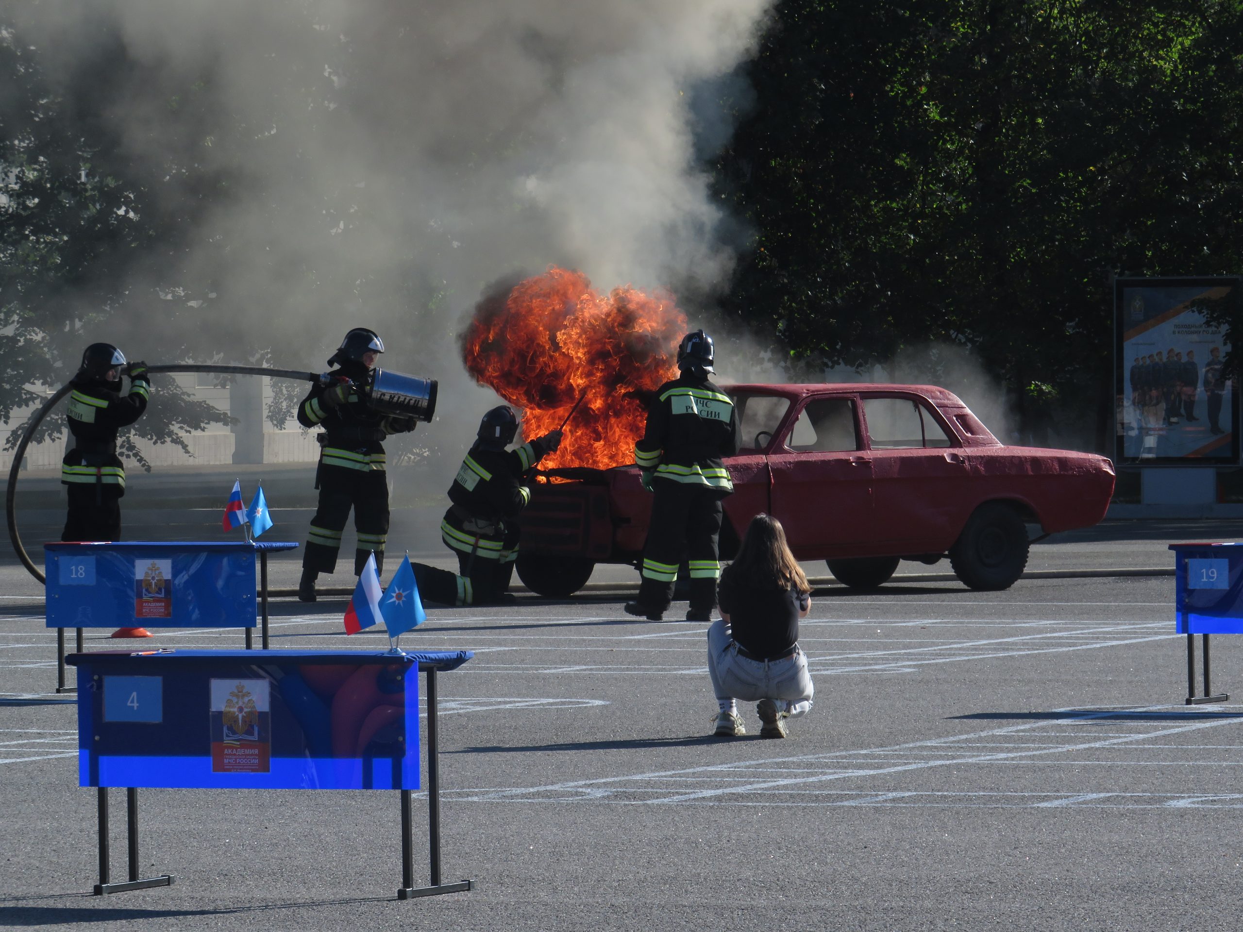 Праздничный день начался с яркого концерта. Гости увидели проход роты почетного караула и барабанщиков, а также показательные выступления по деблокированию пострадавших в ДТП, которые показали высокий уровень профессионального мастерства обучающихся в данном учебном заведении.