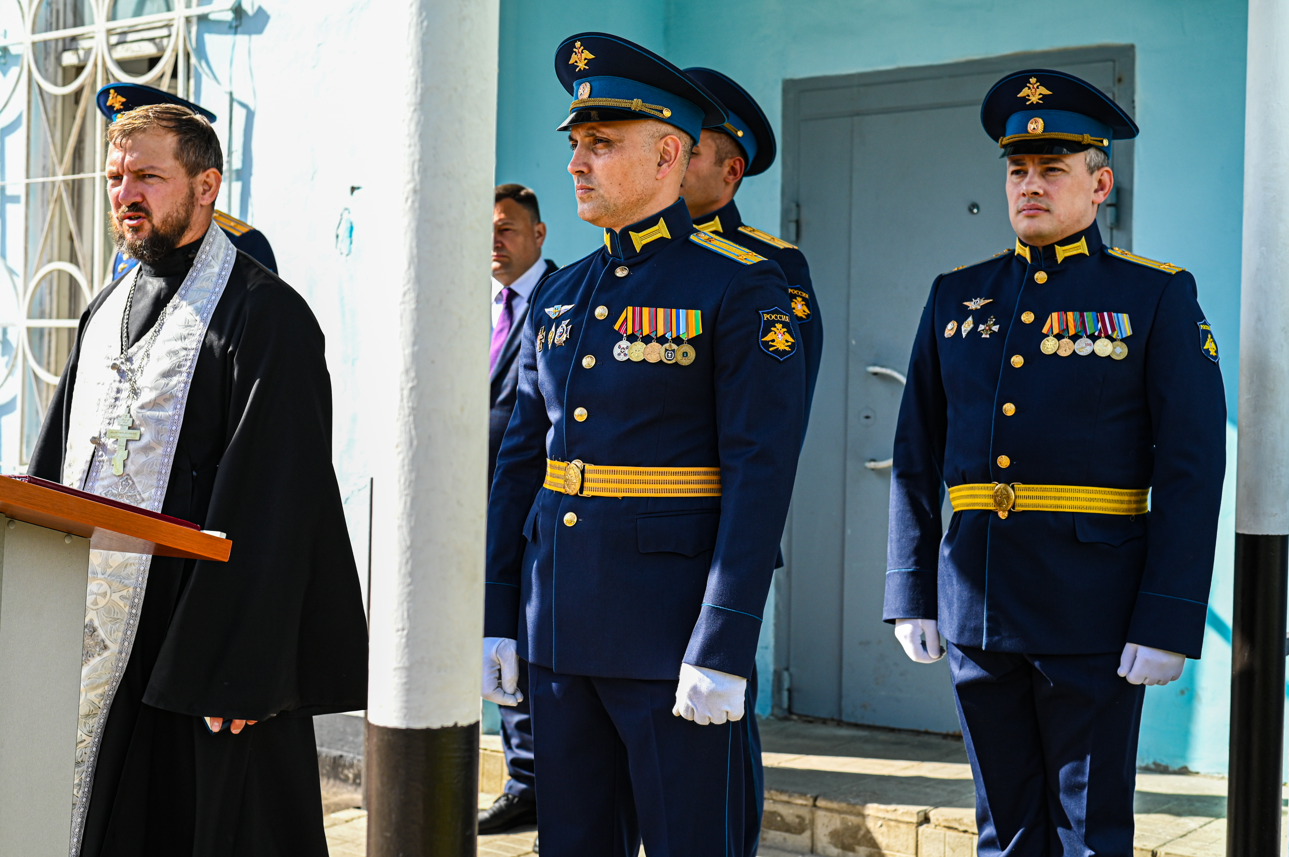 По благословению Председателя Отдела по взаимодействию с Вооруженными Силами, правоохранительными органами и казачеством Сергиево-Посадской епархии игумена Феофана (Замесова) клирик Страстного храма д. Артемово священник Евгений Ковалев освятил молодым офицерам погоны, сказал напутственные слова и благословил их на предстоящую службу в 9-ой Дивизии противоракетной обороны.