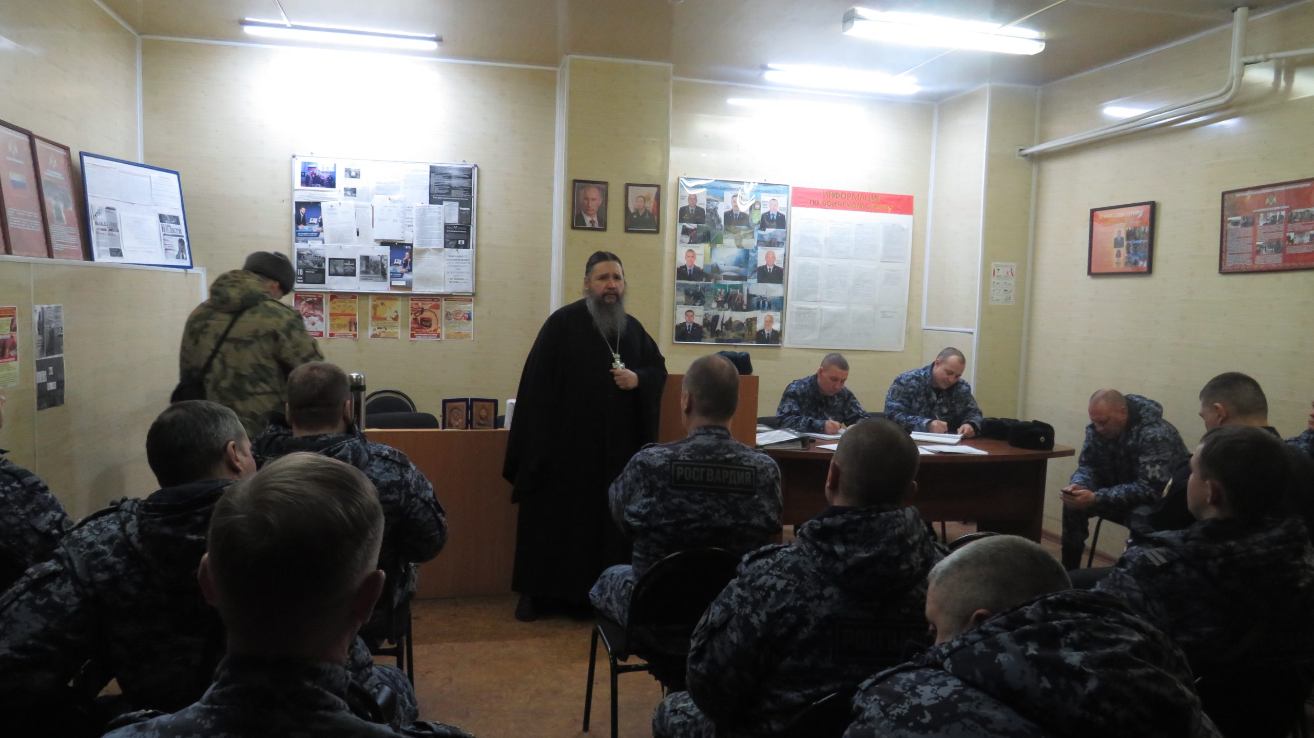 Игумен Феофан рассказал участникам встречи о различных случаях помощи Божией защитникам Отечества, явленных в ходе военных действий, как в прежние времена, так и сейчас, когда Российские военнослужащие участвуют в Специальной Военной Операции. Полковник Политыло Я.Н. поделился с сотрудниками вневедомственной охраны своим боевым опытом, который без всякого преувеличения весьма значительный – в частности в ходе второй войны на Кавказе он определенное время был комендантом в г. Грозный.