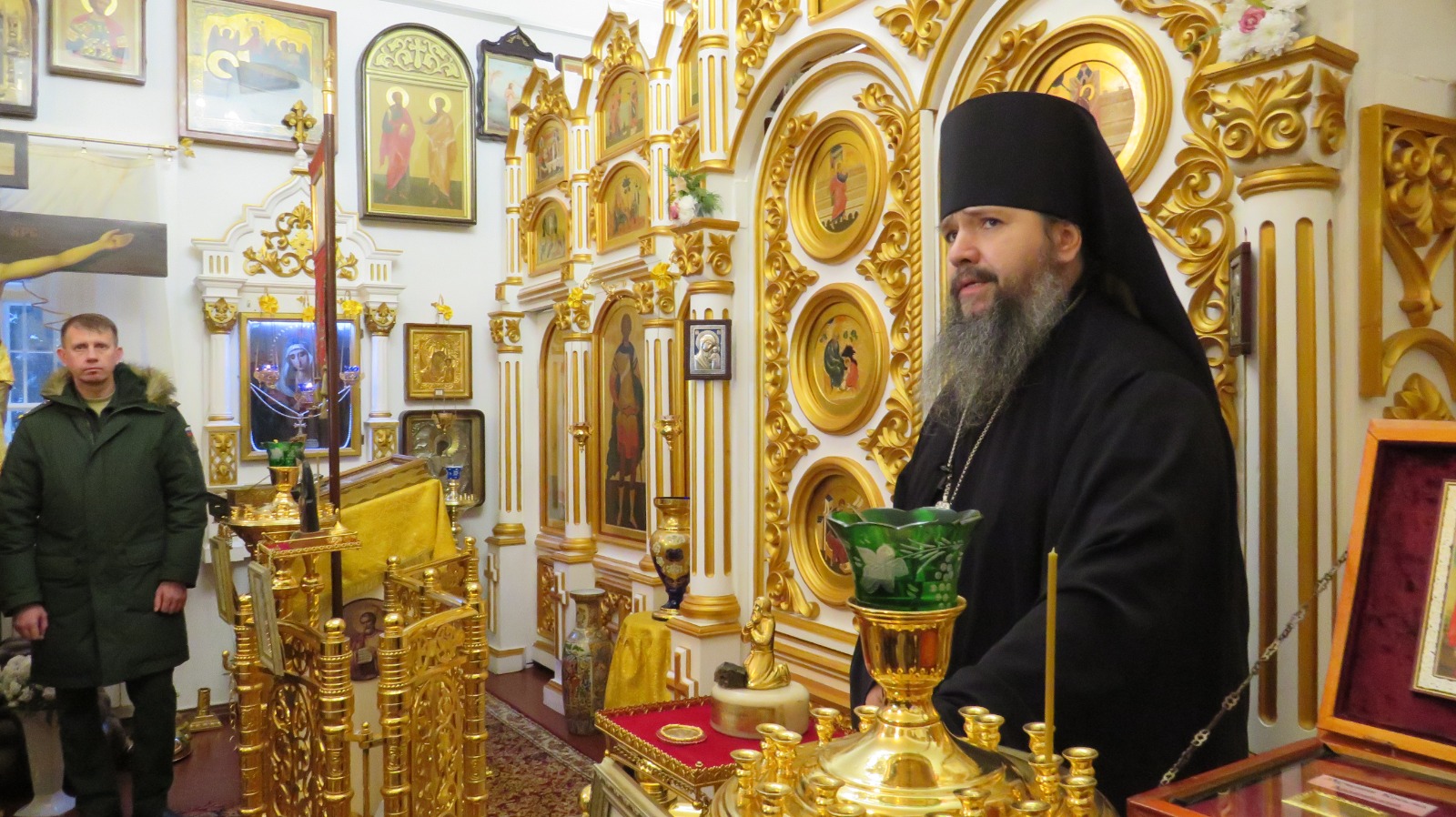 По окончании экскурсии заместители командиров по работе с личным составом прошли в усадебный храм Спаса Нерукотворного, где настоятель храма игумен Феофан (Замесов) рассказал о его истории, современной жизни и святынях. Он также заметил, что храм был в текущем году отреставрирован и в настоящее время в нем совершаются регулярные богослужения.