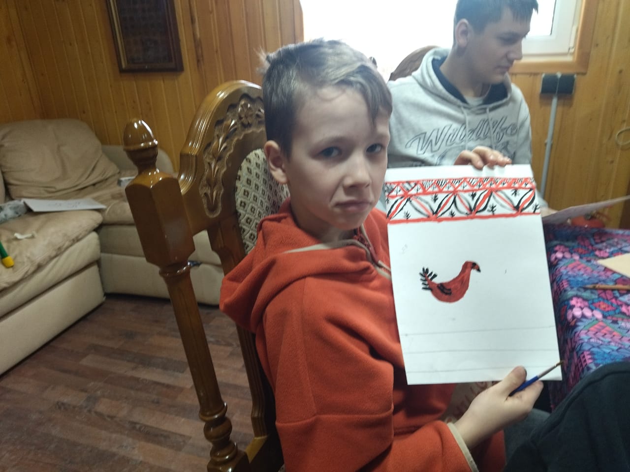 На уроке Творчества начали знакомство с историей возникновения мезенской росписи и изучение ее элементов. >>